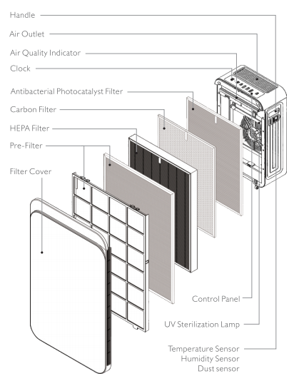 EPI510 Air Purifier Air Cleaner Filters Allergies, Smoke, Odors and Dust Ionizer Function UV sterilizer Kill the Virus